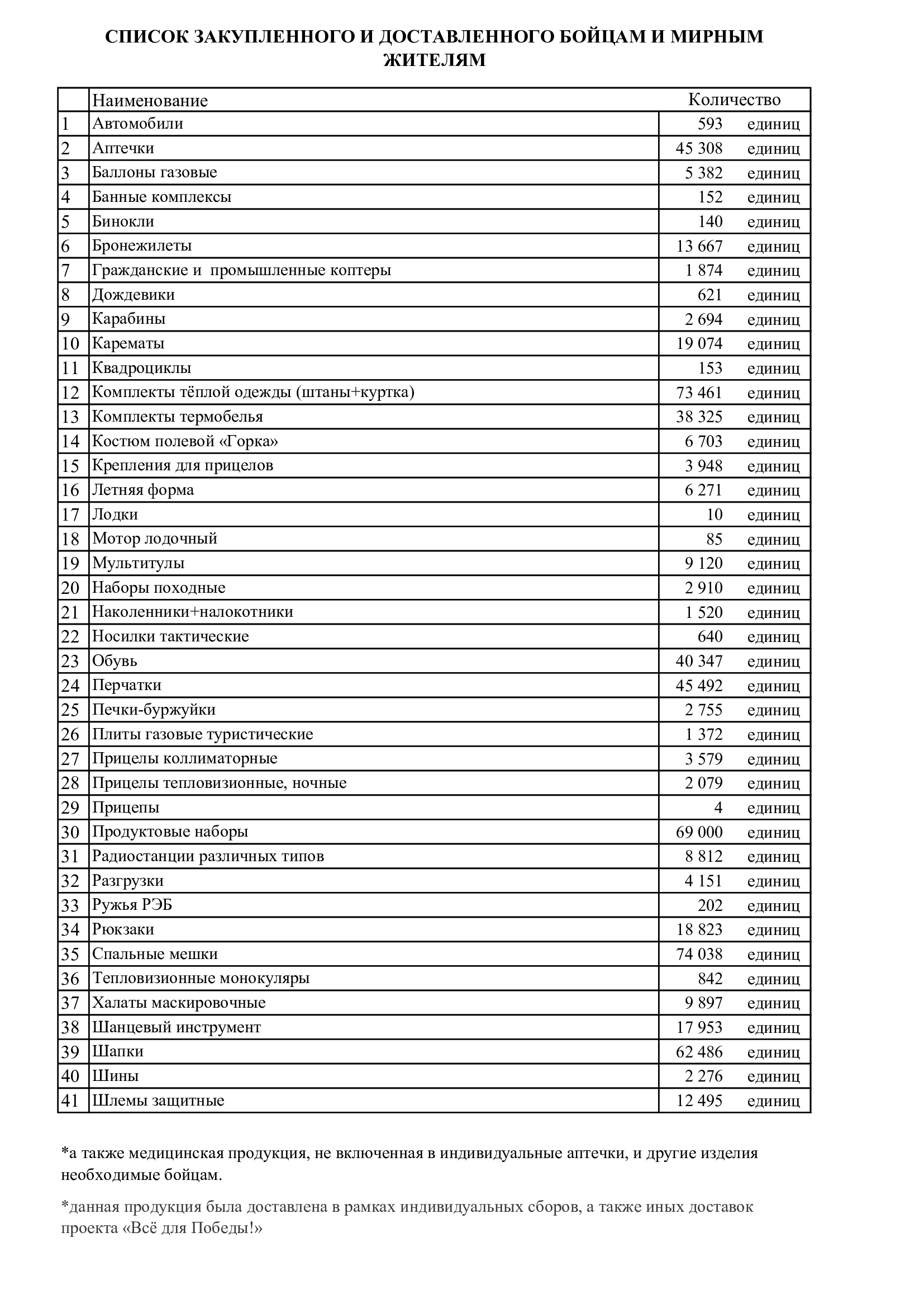 ПОСМОТРЕТЬ ОТЧЕТ ПО ДОСТАВЛЕННОМУ БОЙЦАМ И МИРНЫМ ЖИТЕЛЯМ В файле